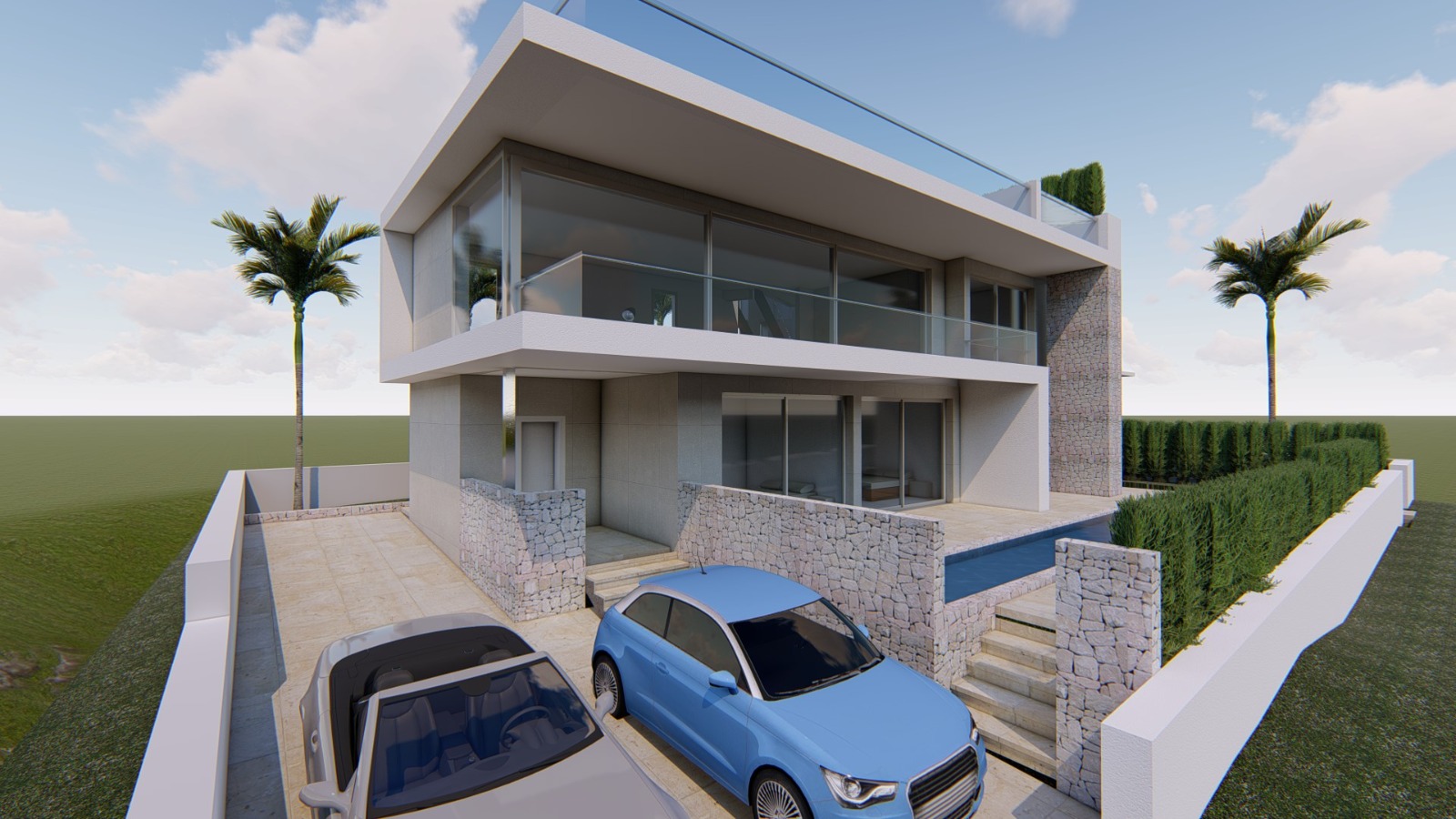 Se situa sobre una parcela urbana de 416m2 y distribuida en dos niveles de vivienda, terraza solarium con una segunda piscina y planta sótano.