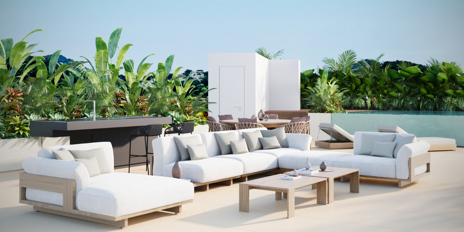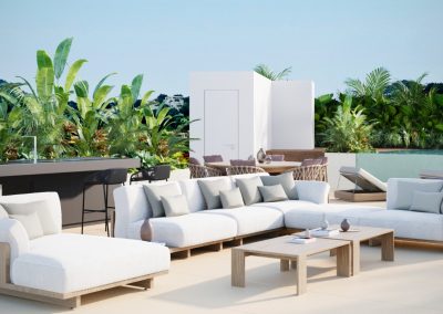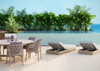 En el nivel superior terraza de más de 120m2 ideal como espacio chill out y de reuniones con amigos, adicionalmente cuenta con una segunda piscina de 19.85m2.